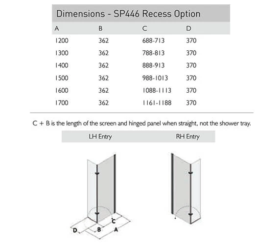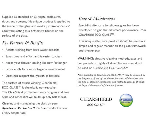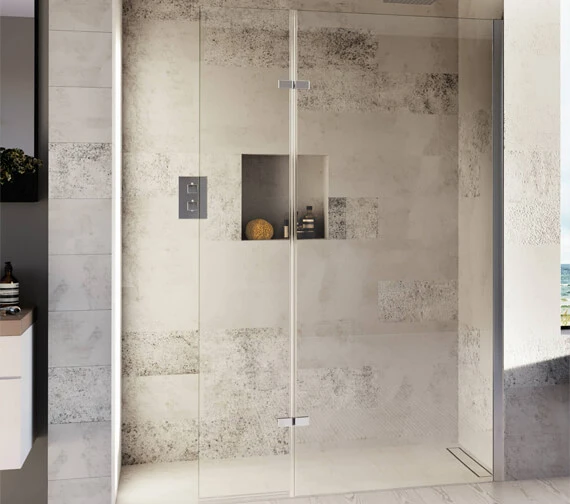 Aqata Spectra SP446 Recess Walk-In Enclosure with Hinged Panel is designed for an attractive showering installation and showcases a minimalistic look. It is made out of 8mm toughened glass and has a height of 1950mm. The glass surface is applied with ClearShield ECO-Glass as standard that keeps the glass easy to maintain by resisting, watermarks, stains and limescale. Offered with SB1 glass to glass steady bar as standard, this versatile product can be used with a tray or wetroom.