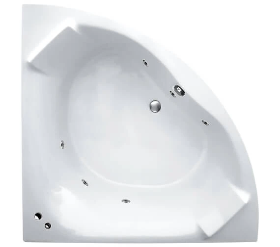 The Aqua Luxe 1400mm Corner Whirlpool Bathtub with Built-In Headrest is available for purchase in an impressive array of possible jet configurations. It can include a 7-colour stop light and/or a compatible bath panel included along with it if desired. A space-saving corner design that is perfect for all types of interiors, this product features two sloped ends, a built-in headrest and a double-ended design that is remarkably easy to get into and out of when needed. Supplied with sturdy and easy-to-use bath legs and suitable for placement even on uneven floors, this unit also includes dual pneumatic jet controls and a pre-drilled bath waste hole as well.
