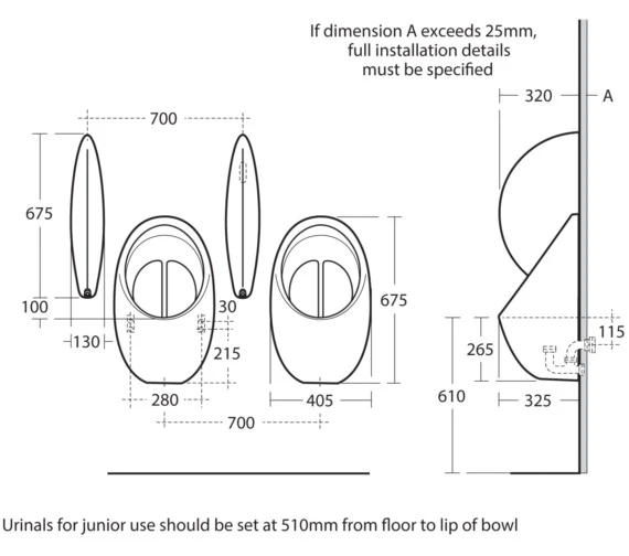 Armitage Shanks Contour HygeniQ 670mm Waterless Urinal Bowl – Easy To Clean
