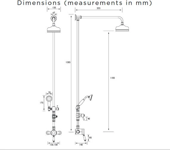 The Bristan 1901 Exposed Sequential Valve with Diverter and Rigid Riser Kit takes the best of both the old and modern worlds and blends them into an iconic finish. Two integrated flow regulators reduce water consumption for a more ecologically sound design and also saves on running costs over time. Thermostatic technology ensures a safe and comfortable shower and is pre-set to a maximum temperature of 42 degrees. A fixed showerhead and a separate handset allow for different showering options, operated separately. An external diverter enables swift selection between the main overhead piece and the separate handset for convenience.