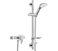The Bristan Claret Thermostatic Exposed Bar Valve with Rigid Riser Kit will make a worthwhile addition to the shower space. Available with a round overhead shower rose, this unit can be matched to surroundings that share similar geometry, and the broad shower rose provides an enveloping, rain-like experience. Being fitted with a secondary handset, this unit provides useful rinsing options that can be selected via a simple diverter. The circular metal handles on either side of the unit manage the water flow and temperature. Thermostatic in nature, this cylindrical shower valve ensures a safe and comfortable performance each time. It comes finished in sleek chrome making it an ideal candidate for the cool, modern shower space.