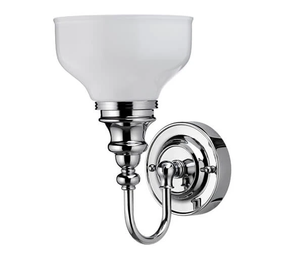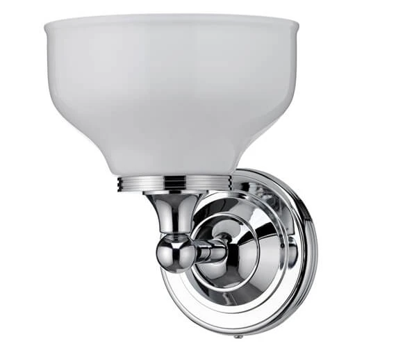 The Burlington Light combines frosted glass with chrome to create a highly desirable piece suitable for both modern and traditionally themed interiors. Mounted to the wall, this brass fixture with a round or ornate base provides up-lighting for the interiors, perfect for those looking to infuse their bathroom with a soothing environment.