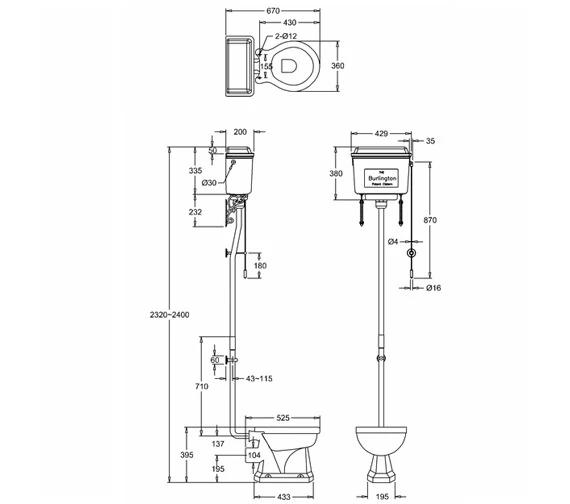 Burlington White High Level WC With Aluminium Cistern