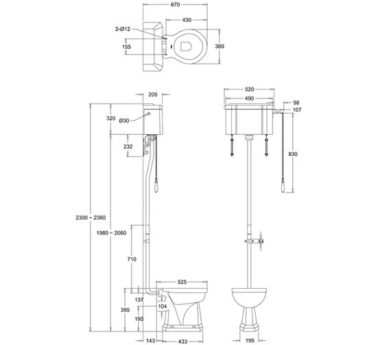 Burlington White High Level WC With Single Flush Cistern And Flush Pipe Kit