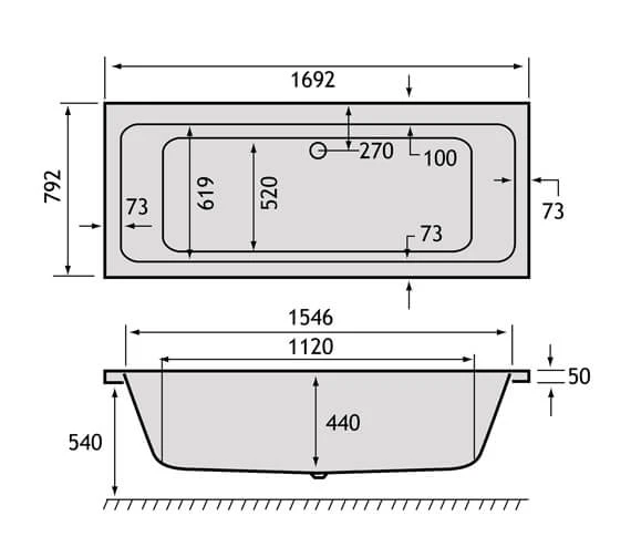 - It has a central waste and overflow below the tap ledge and is suitable for a bath screen.