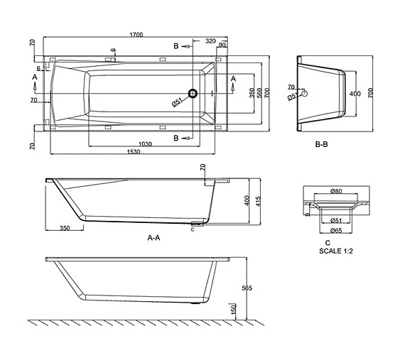 - 10mm diameter steel reinforcing rod runs inside the bath rims.