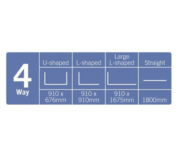 - It can be used to create any one of four assembly options – U-shaped, L-shaped, Large L-shaped and Straight.