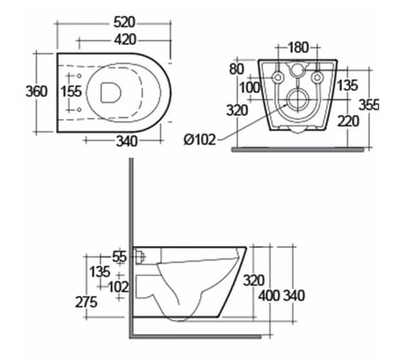 Essential IVY Wall Hung White Toilet Pan With Soft Close Seat