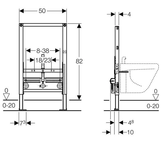Geberit Duofix 500 X 820mm Bidet Frame Blue