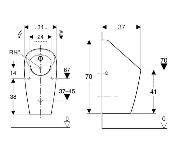 The Geberit Selva 340 x 700mm Rimless Urinal for Concealed Flush Control is remarkably easy to clean and maintain and the spray head itself can even be replaced from the front without removing the ceramic appliance. Complete with a trap adaptor that can be easily height-adjusted without tools, this products trap can also be replaced from the top without removing the ceramic appliance as well. Created to be operational even without water when required, this unit also includes an easy to clean drainage system and each flush contains precisely 0.5-litres per flush every single time it’s employed.