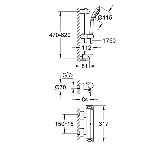 Grohe Grohtherm 2000 New Exposed Chrome Thermostatic Shower Set