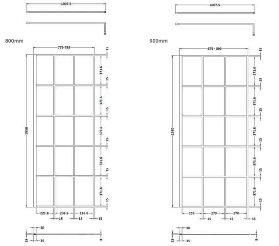 Give your a more luxurious-looking atmosphere with the Hudson Reed Black Framed Walk-In Wetroom Shower Screen and Support Bar. The shower screen installs around the front and side of the walk-in shower and gives it a latticed window appeal with its black panels. The product measures 1950 mm in height with your choice of widths to suit any size shower area. The screen is made out of eight-mm thick toughened safety glass durable and strong enough to withstand even high water pressure systems. The fixings that are required for installation are included with the product.