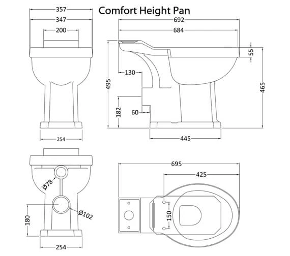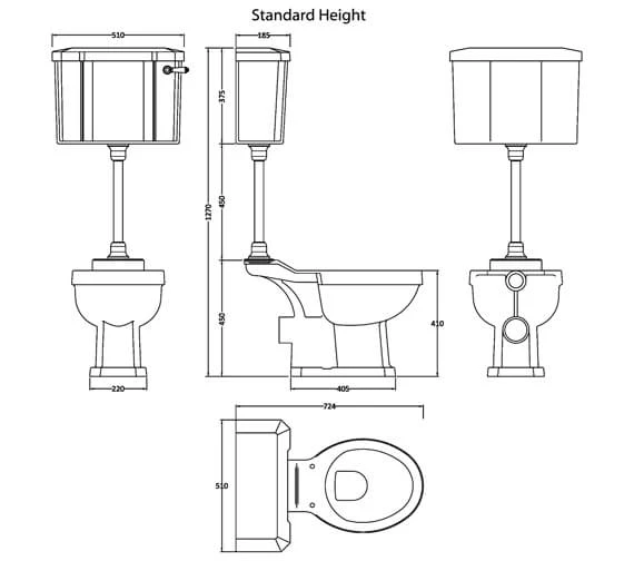 Hudson Reed Old London up with the Richmond Mid Level Pan With Cistern And Flush Pipe Kit will provide a sturdy sanitary-ware for your daily essential needs. This product comes in 2 Variants – Standard Height and Comfort Height and is supplied with a cistern, cover plate and Straight flush pipe. It is ideal for commercial settings and brings an early Edwardian sensibility to the bathroom. The useful fixture is a high quality offering for optimal water use and perfect flow.