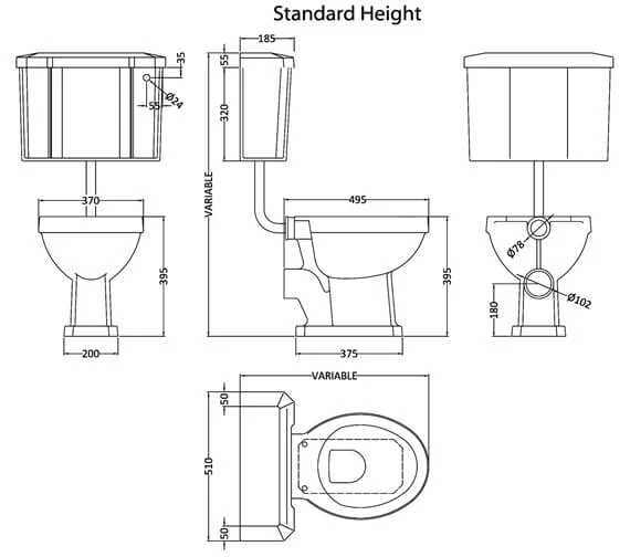 - Sizes of comfort height Pan: 365 x 522 x 460mm [Width x Projection x Height].