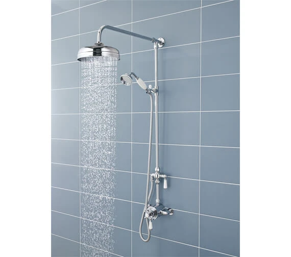 If you prefer rainfall to a trickle, the Victorian Grand Rigid Riser Kit from Hudson Reed holds the key to your preference with its 8-inches wide shower head, which is sure to drench you in a rainfall-like experience. It also has a separate handset shower shaped like a telephone receiver for directing the flow to your body’s desired parts. This bodied brass unit with a choice of finish adds grandeur to the washroom and has a built-in diverter to alternate between the over-head and the handset shower. It can be used with exposed , available separately.