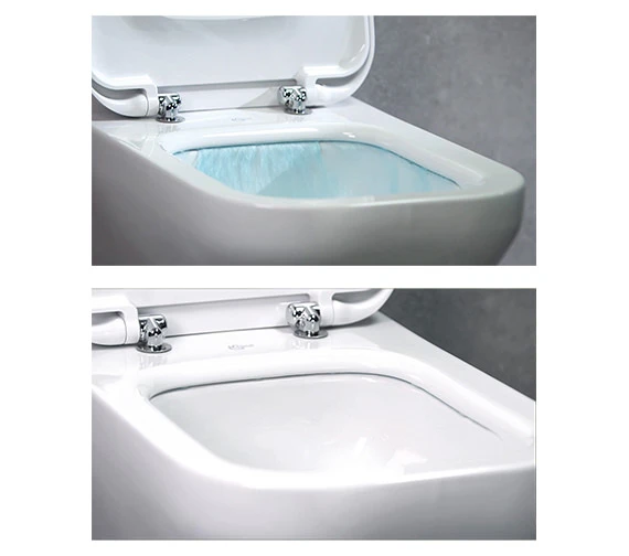 This Ideal Standard Tesi Wall Hung WC Pan serves up a healthy helping of fashion and function. The contemporarily crafted ceramic ware boasts of a modern geometric profile which is splendidly accentuated with a pristine white finish. It is an efficacious product featuring new AquaBlade® flushing technology and completely hidden fixation system. Aquablade is a prevalent technology because of its superior flush performance, offering a high standard of hygiene. Styled by Robin Levien, it fits right into all kinds of spaces, commercial or residential. Our online store sells it at an unbelievably low price to suit your pockets.