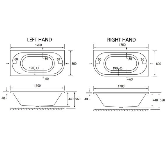 - Double-ended design – waste positioned in the centre of the bathtub.