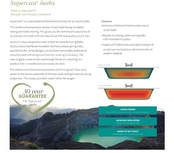 - ✔Ten years of guarantee on acrylic and 30 years on supercast from the manufacturer