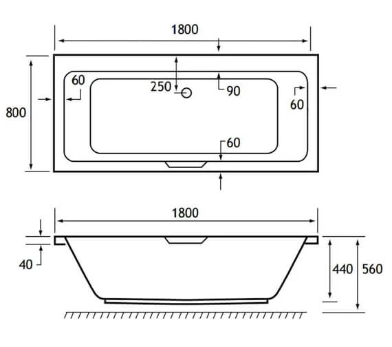 - Length: 1800mm x Width: 800mm x Internal depth: 440mm.