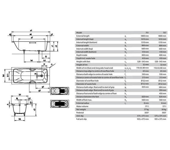 - Thirty years guarantee from Kaldewei against any manufacturing defects.