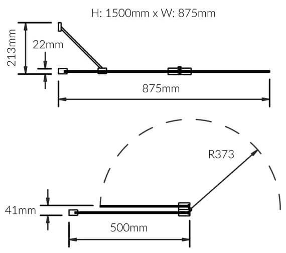- The smaller 375mm folding panel, which sits behind the fixed panel when not in use, allows easy access to the shower.
