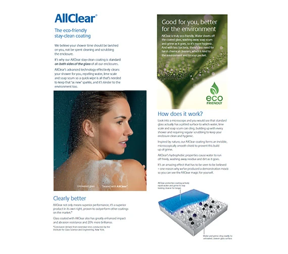 - ✔Glass with advanced AllClear coating to keep your shower cleaner for longer