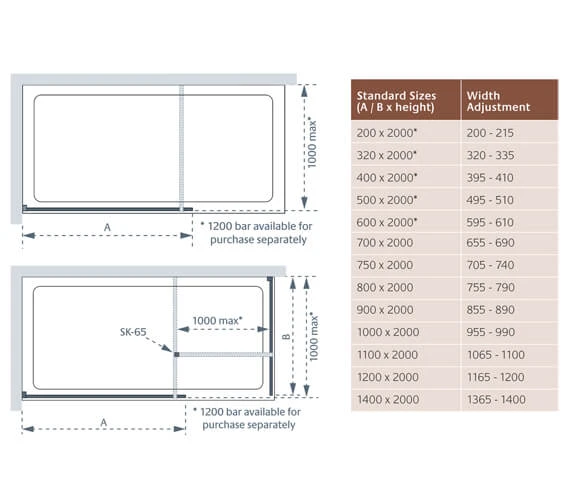- Available in 8 Different Widths: 700mm, 750mm, 800mm, 900mm, 1000mm, 1100mm, 1200mm, 1400mm.