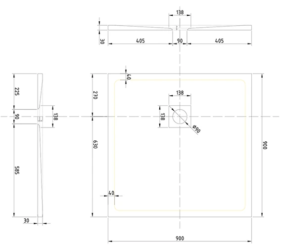 - Size : 900 x 900mm [Width x Depth].