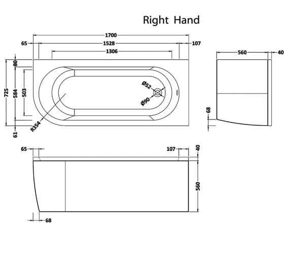 Nuie Crescent Back-to-Wall Panel can be purchased in Left Hand or Right-Hand variations. Bath Panel is immaculately crafted to make your tub look good but also hides the pipework for a neat finish to the tub. Made from thick 4mm acrylic, it provides excellent durability in the long run.