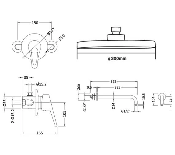 Nuie Round Chrome Manual Valve With Slide Rail Kit Or Shower Head And Arm