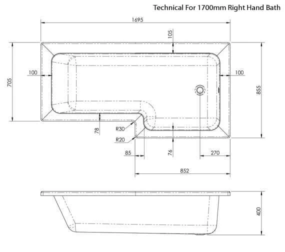 - Technical Specification for 1700mm Bath:.