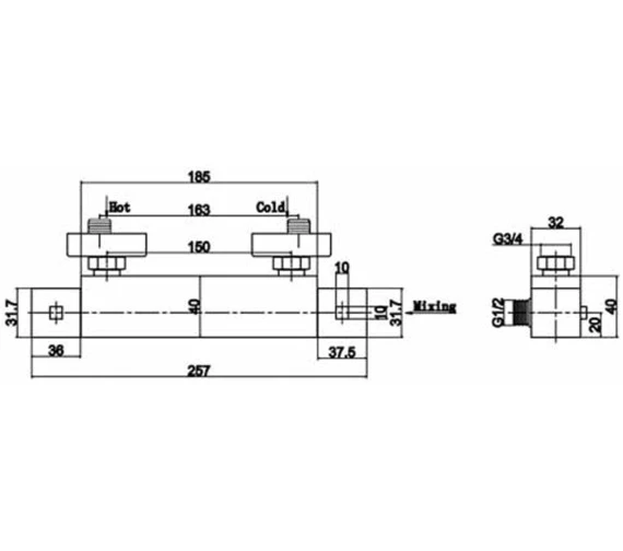 Nuie Thermostatic Square Chrome Bar Shower Valve With Bottom Outlet