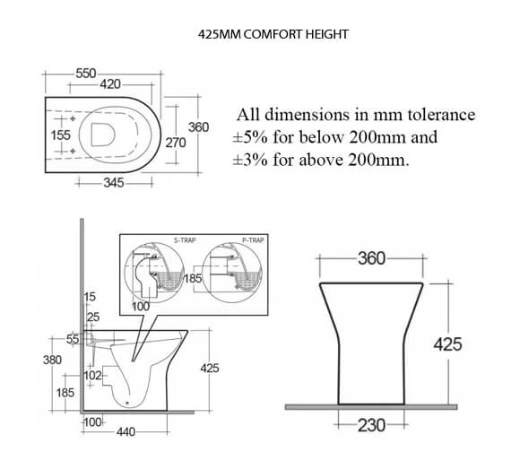 Using the Rak Resort Comfort Height 425mm Back to Wall Rimless Pan, you can effortlessly update your bathroom space without taking up too much room. The pan is crafted out of high-grade ceramic; resistant to damage and scratching. Overall, the product measures 360mm in width by 550mm in depth by 425mm in height and is finished in white, allowing it to fit into any bathroom space, regardless of its decor style or colours. The fixings needed for installation are included, which makes this product simple to install straight out of the package. Couple it up with a to give your bathroom a charismatic look.