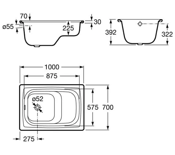 Roca Contesa White 1000 X 700mm Rectangular Steel Hip Bath