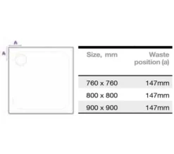 Merlyn Level25 900 X 900mm White Square Tray With 90mm Fast Flow Waste