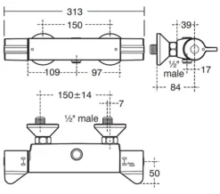 Armitage Shanks Contour 21 Exposed Thermostatic Bar Shower Valve