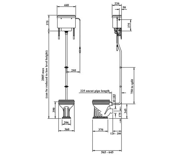 - Cistern size: Width 440mm x Depth 220mm x Height 375mm.