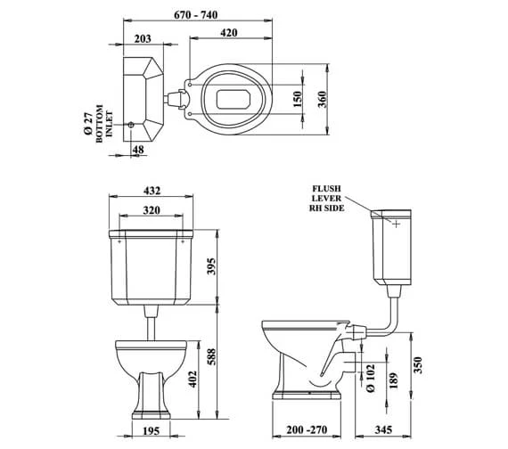 - Projection from wall: Min. 670mm and Max. 740mm.