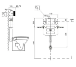 RAK 12cm Front Flush Concealed Cistern And Frame For Wall Hung Pan – Frame Height 114cm