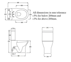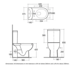 RAK Tonique Full Access Open Back White Close Coupled WC Pack With Urea Soft Close Seat