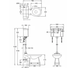 Burlington Rimless White Pan With Ceramic Lever Cistern And Medium-Level Flush Pipe Kit