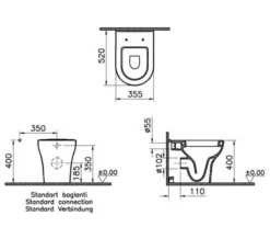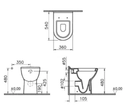 VitrA Zentrum Open Back Close Coupled White WC Pan With Cistern