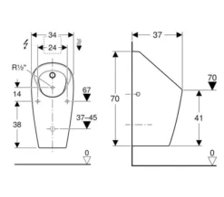 Geberit Selva 340 X 700mm Rimless Urinal For Concealed Flush Control