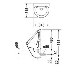 Duravit White Tulip 320 X 340mm Rimless Urinal Wiith Concealed Inlet