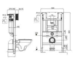 RAK 12cm Front Flush Concealed Cistern And Frame For Wall Hung Pan – Frame Height 114cm