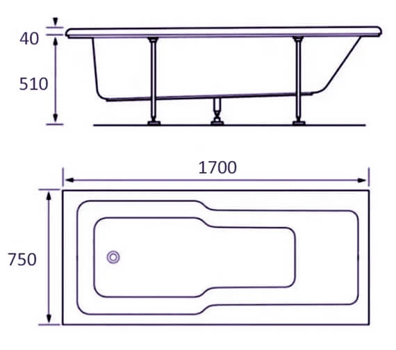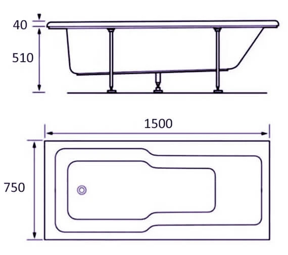 - It can be drilled for bath-mounted taps above the waste and overflow or halfway down the long wall side.