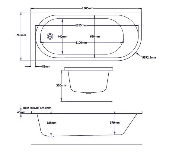 Trojan J Shape Single Ended Encapsulated Bath White