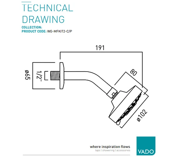 Vado Wall Mounted Multi Function Fixed Chrome Shower Head With Arm